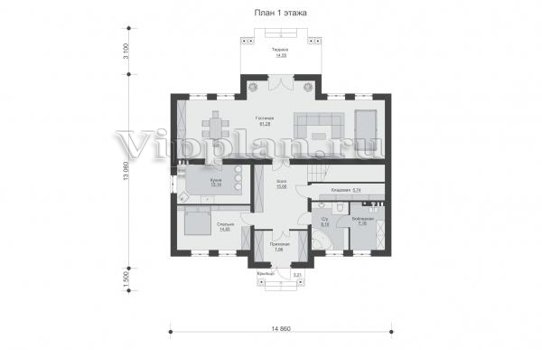 | Размеры дома: | 17.66м×14.86м |